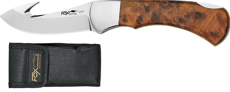 Add to enquiryKNIFE FOX GUTHOOK 7.5CM BLADE BRIARWOOD HANDLE WITH POUCH