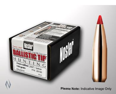 The more you hunt the more you start to realize how unpredictable and unforgiving nature can be which is why we engineered the Ballistic Tip Hunting bullet to be very predictable and extremely forgiving. Whether youre after whitetails blacktails mulies or pronghorns Ballistic Tip bullets deliver the kind of accuracy consistency and down-range punch required for putting down that buck in any situation. The combination of performance and versatility that Nosler has built into these bullets has resulted in over 25 years of successful hunts for sportsmen across the country and around the world. These bullets deliver the accuracy consistency and down-range punch required for clean kills in all situations. These flat-shooting wind-defying bullets utilize ballistic-designed boat-tails and polymer tips to increase long-range efficiency and protect against tip damage in the magazine. Unique tapered jacket provides controlled expansion at all practical ranges and velocities. Nosler Ballistic Tip: Streamlined polymer tip color-coded by caliber resists deformation in the magazine and initiates expansion upon impact. Fully-Tapered Jacket and Special Lead-Alloy Core: Allows controlled expansion and optimum weight retention at all practical velocity levels. The heavy jacketed base prevents bullet deformation during firing. Heavy Jacketed Base: Acts as a platform for large-diameter mushroom. Ballistically Engineered Solid Base: Boat tail configuration combines with the streamlined polymer tip for extreme long-range performance and for easier loading.