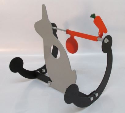 The principal of the target is that you can either shoot the disc on the animal or the target behind the cut out, which in this case is a carrot to match the rabbit.